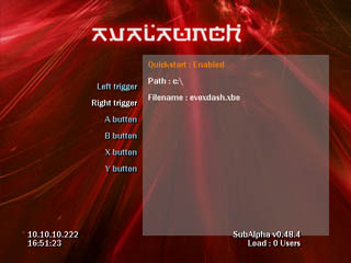 Avalaunch gives you a Quickstart menu for automatic booting to user-configurable games, programs, or even another dashboard. It also contains many Language files for the non-english, and the ability to update Avalaunch directly from the dash. No more hunting around the web!